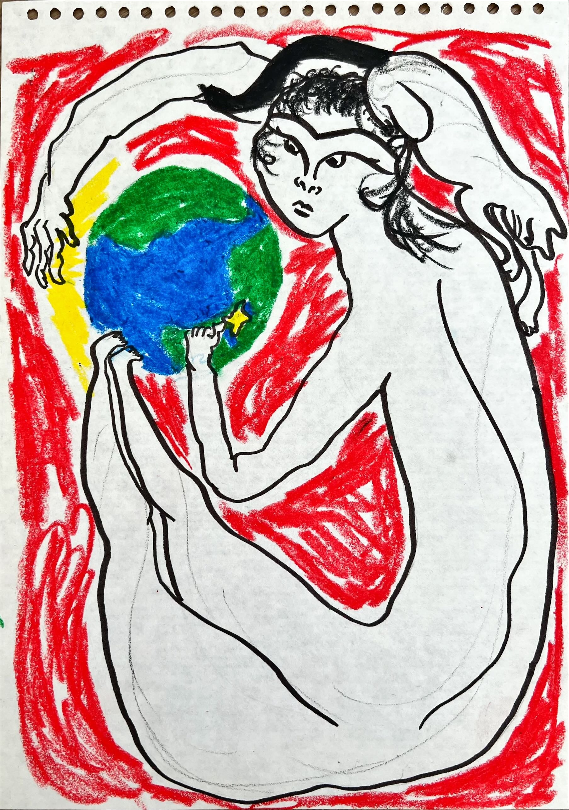 Oil pastel and marker on paper