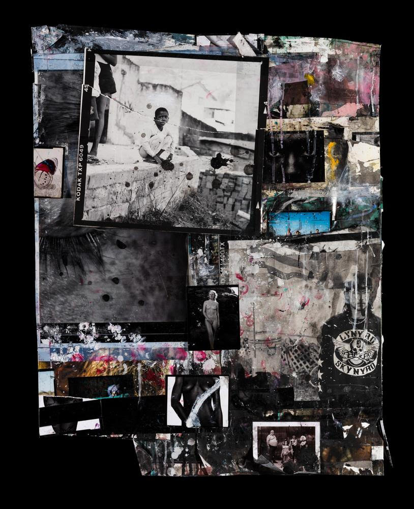 Poloroid, Xerox, archival pigment print, gesso, oil, acrylic, oil stick and tape on board