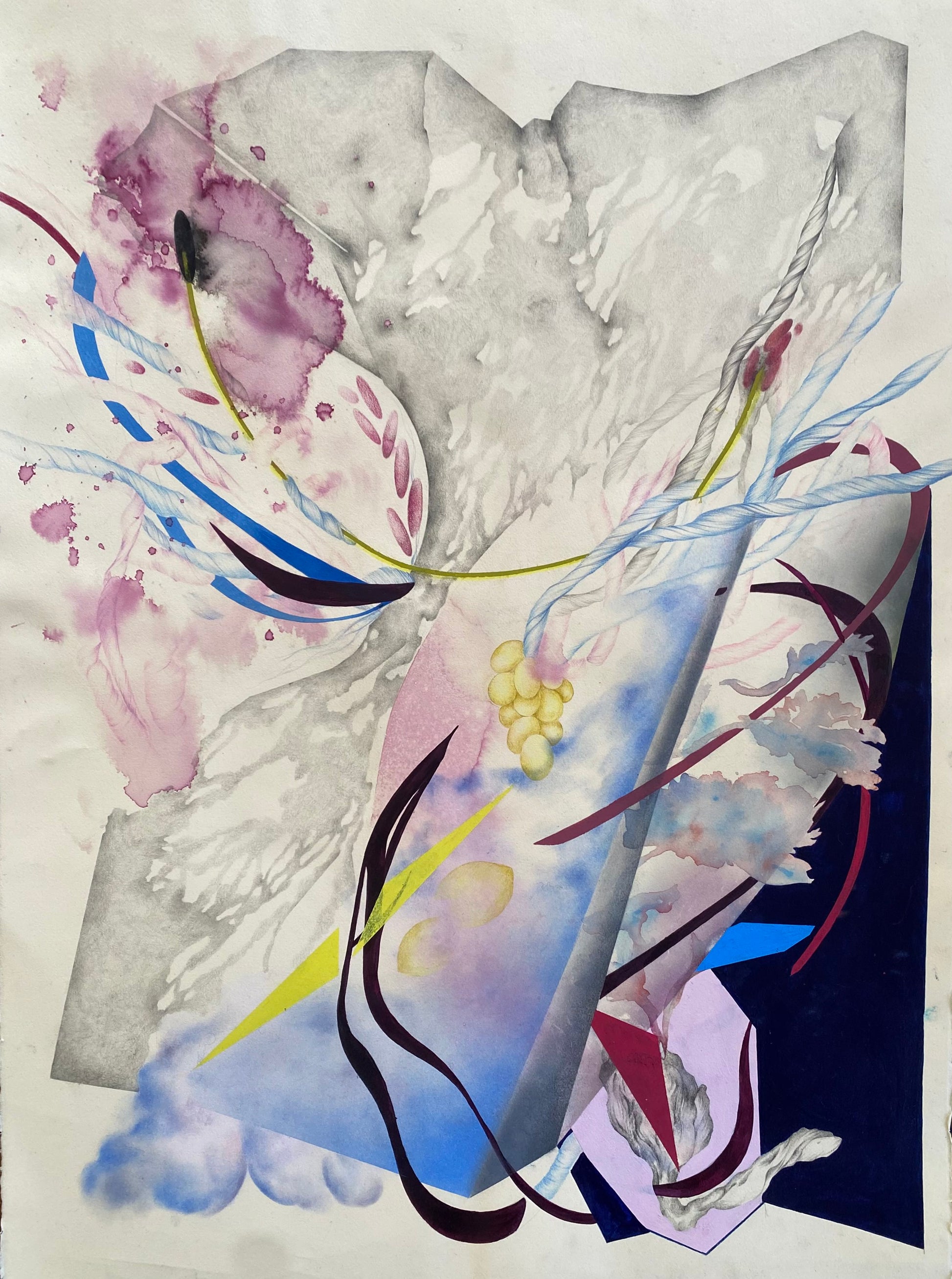 Pencil, crayon, watercolor on paper
